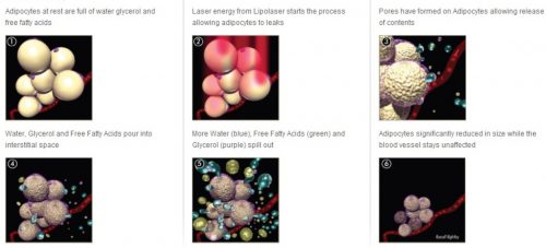 In plaats van een pijnlijke operatie, zoals bij liposuctie, maakt de lipolaser gebruik van een koudlaser techniek waarbij de laserstralen in de huid dringen en zich richten op de specifieke vetcellen. Hierdoor worden kleine gaatjes gemaakt in de vetcelwand, zodat opgeslagen water, triglyceride en vrije vetcuren loskomen en op natuurlijke wijde via ons lymfestelser worden afgevoerd. De vetcellen lopen dus leeg en zullen uitdrogen. Meetbare resultaten zijn vaak al te zien na eerste paar behandelingen.Een optimale resultaat boekt u bij een complete behandeling van 2 keer per week over een periode van 4 a 5 weken. Een behandeling duurt 20 a 30 minuten en is volledig pijnloos.